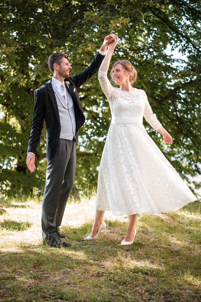 Viele Paare beschreiben meine Arbeitsweise als empathisch. Ich finde schnell einen angenehmen Zugang – sowohl zum Brautpaar als auch zu den Gästen – und schaffe eine Atmosphäre, in der Mitmachen selbstverständlich wird. Das ist eine wichtige Grundlage für authentische Porträts und stimmige Gruppenbilder.